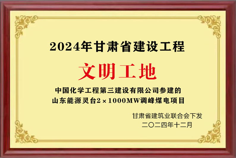 荣誉播报丨山东能源灵台2×1000MW调峰煤电项目荣获甘肃省建设工程“文明工地”称号