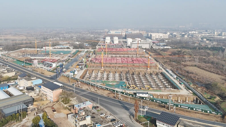该项目位于淮南市现代产业园区合淮路以西、洛河大道以北,总占地面积14.98万平方米,规划10栋建筑,总建筑面积达12万多平方米,由中化学三化建(安徽)建设有限公司EPC总承包,建设内容涵盖生产车间、仓储用房、外部衔接道路,以及配套的绿化、暖通、给排水、消防、电气、弱电及道路等。